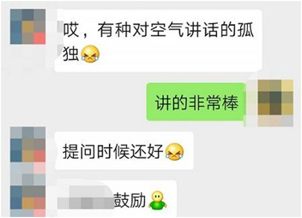 为了能够弥补网络教学的时空限制,督导们发现很多教师都尝试了多种方法,除了使用不同平台的在线直播外,还同时使用QQ群、微信群等多通道同时工作。直播讲课的同时,也关注着其他渠道的信息反馈,让每个学生在线上课堂受到和实体课堂一样的关注,让他们的学习问题及时得到解决。督导王欣指出,《大学英语》的U-课堂慕课内容在这时发挥了重要作用。学生自主学习U-课堂慕课,教师在U-课堂平台中监控学生学习进度,线上辅导答疑,实现了翻转课堂。督导郑玉荣认为,在线课程教好了,一样能达到线下课堂的效果,在有些方面甚至更好,“张俊南老师的《语音基础》本来是选修课,但他出色的教学吸引了本年级48名同学一个不漏地选择了这门课,选修课上出了‘必修课’的效果。”督导王映哲则发现王欣老师的课程课件新颖独特,英语发音悦耳动听,给出了“一堂视觉和听觉的盛宴”的评价。